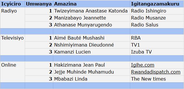 Inkuru z’abo banyamakuru zatoranyijwe mu zindi zisaga 150 zari zatanzwe n’abanyamakuru kugira ngo zihatanire ibihembo.