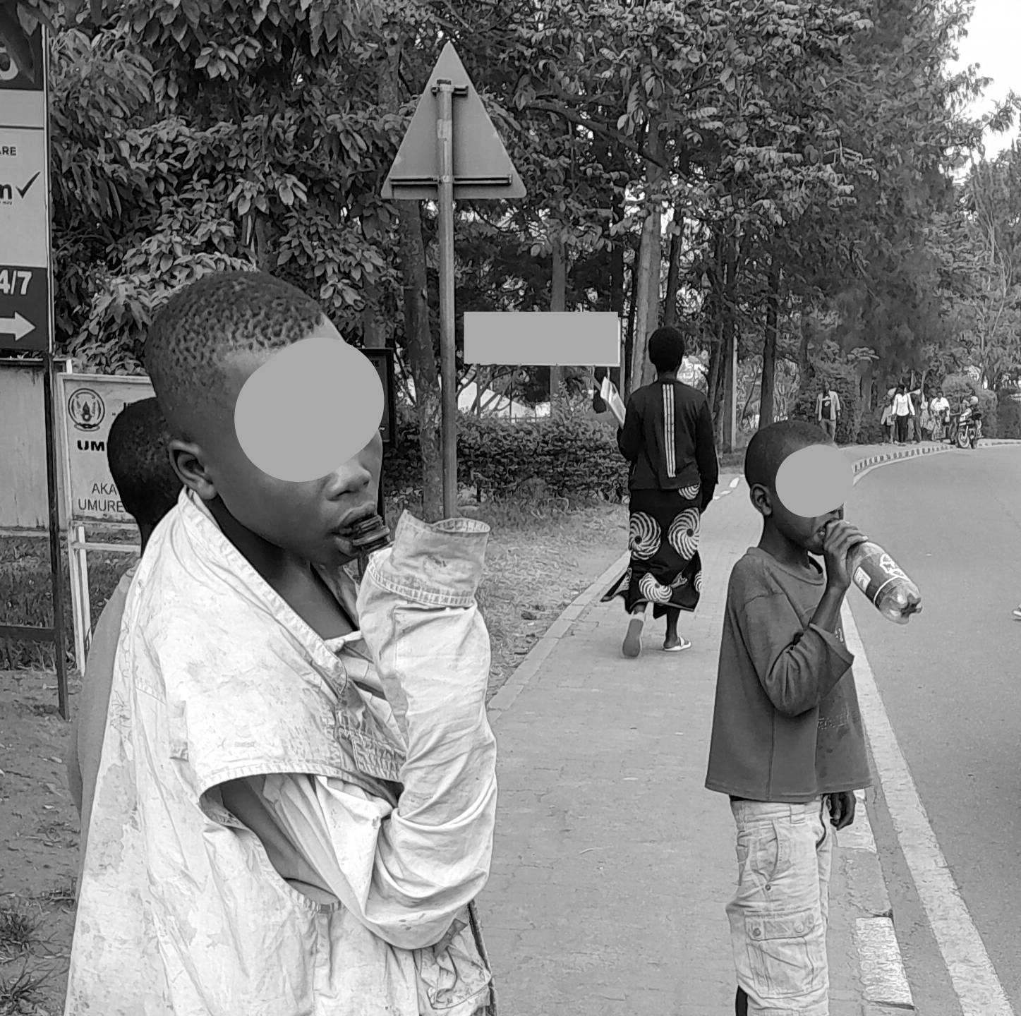 Bifashisha uducupa twa plastique twavuyemo ibindi binyobwa, urebeye inyuma ubona ari nk’amazi arimo. Agacupa bagafatisha amenyo, bagakurura umwuka gusa. Uko ni ko aba bana banywa ibyo byitwa tineri.